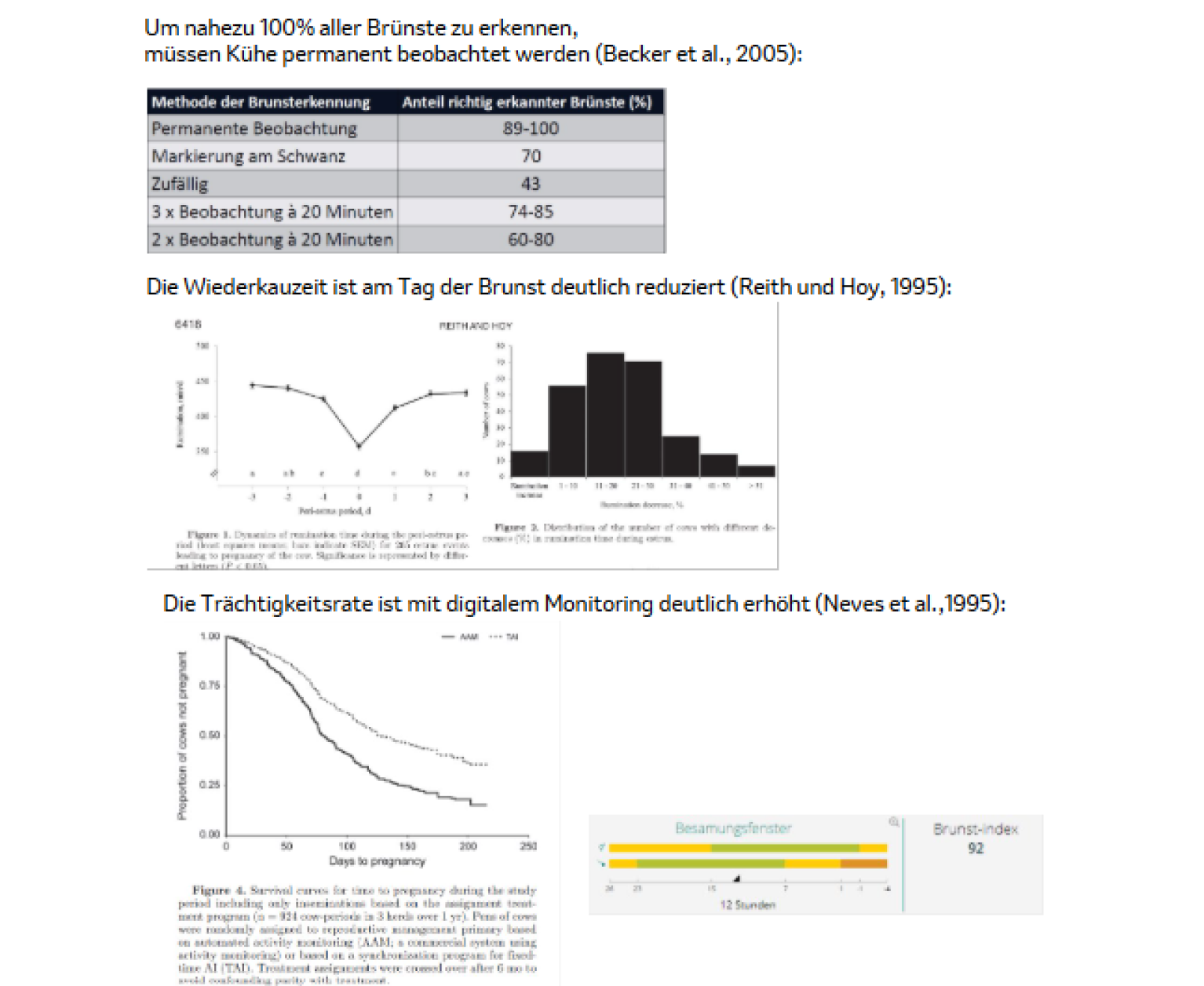 Um alle Brünste erfassen zu können, müssen alle Kühe rund um die Uhr überwacht werden. Dies ist auf herkömmliche Art unmöglich. Durch Nutzbarmachung von Verhaltensparametern wie der Wiederkauaktivität, ist die Bestimmung des optimalen Besamungszeitpunktes mittels digitaler Überwachung durch SenseHub® möglich. Denn die Wiederkauaktivität sinkt am Tage der Brunst deutlich ab. ​